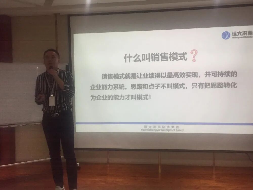 随着行业不断发展,防水市场趋于集中化。在这种背景下,远大洪雨也处于重大战略变革中。为更好帮助员工转型,进一步认识销售的真谛,公司邀请远大洪雨集团副总经理闻万生老师为大家讲授销售模式。